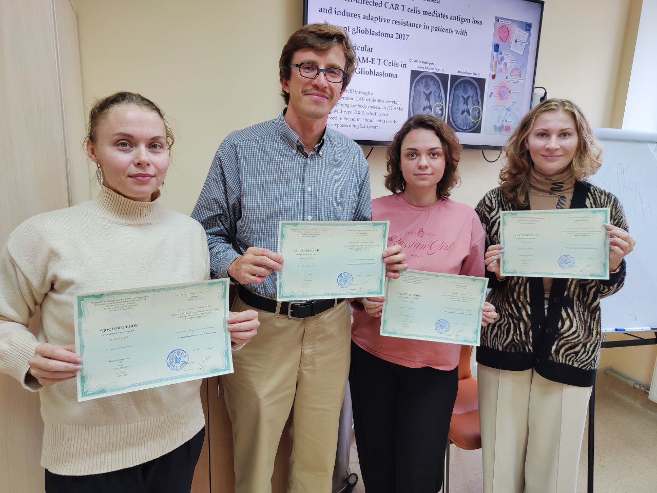 Сотрудники ЛРБ прошли обучение в ФГБУ «НМИЦ им. В. А. Алмазова» Минздрава России (сентябрь 2025). На фото: Татьяна Храмко, Юрий Северюхин, Ольга Виноградова, Инна Колесникова