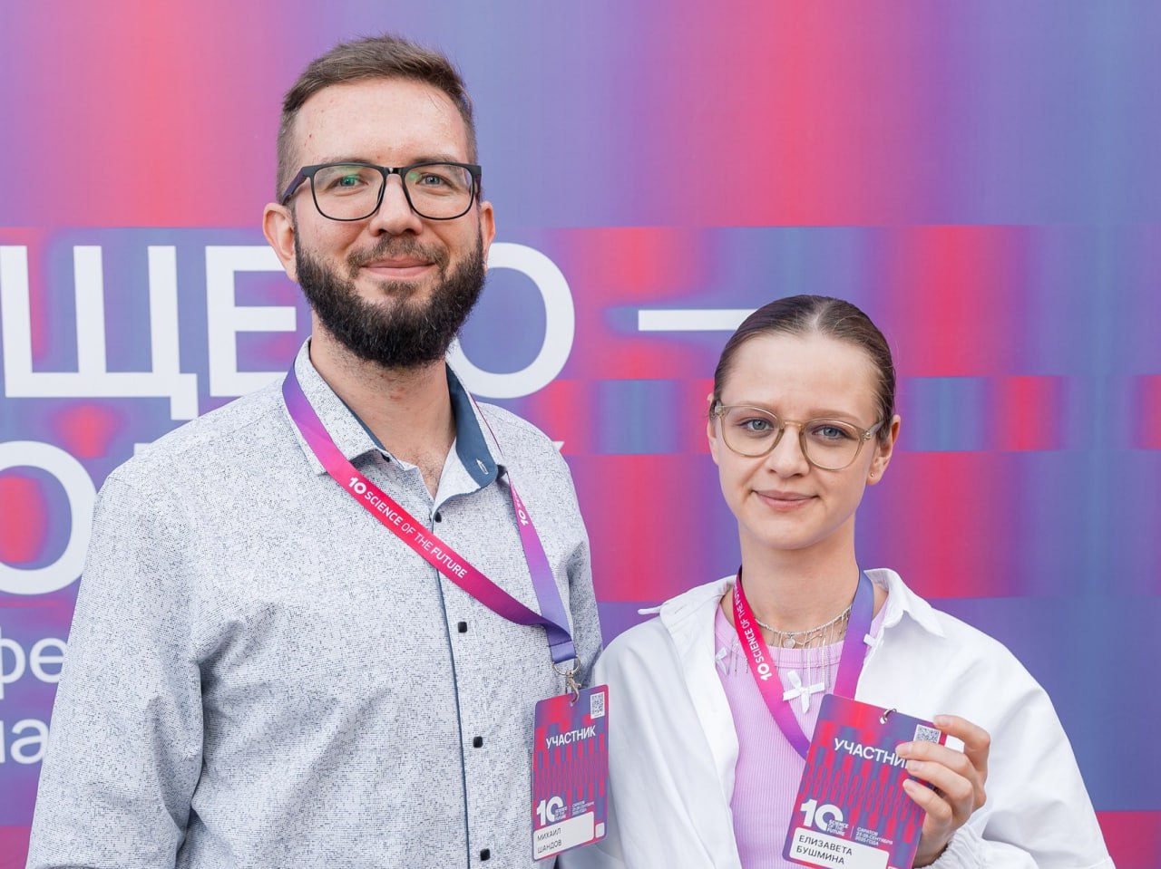 VI Международная научная конференция и X Всероссийский молодежный научный форум «Наука будущего — наука молодых» (23-26.09.2025). На фото: Михаил Шандов и Елизавета Бушмина.